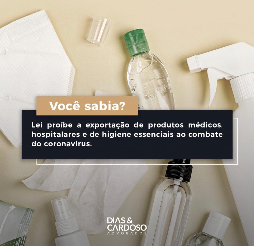Em 23 de abril, foi publicada a lei 13.993/20, que proíbe a exportação de produtos médicos, hospitalares e de higiene essenciais ao combate do coronavírus. Quem descumprir, em tese, pode responder pelo crime de contrabando, tipificado no artigo 334-A do Código Penal.