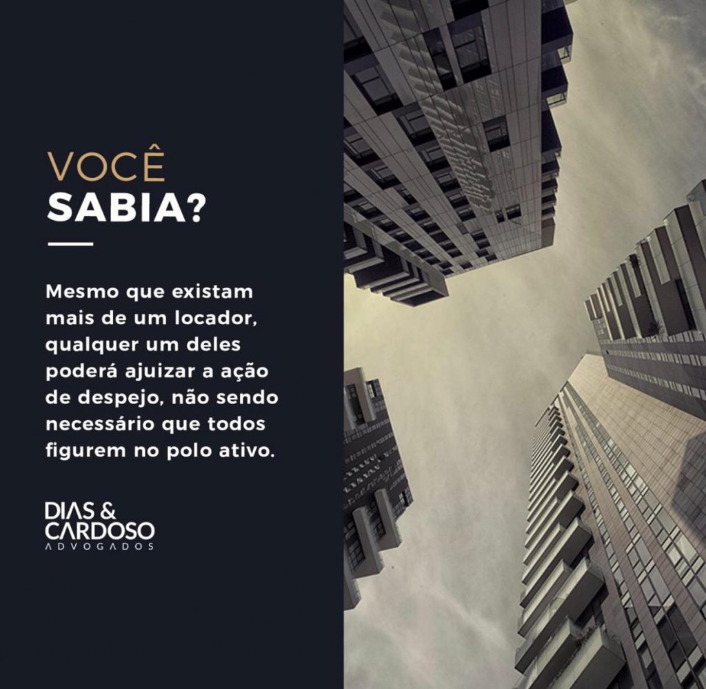 A ação de despejo não exige a formação de litisconsórcio ativo necessário. STJ. 3ª Turma. REsp 1.737.476-SP, Rel. Min. Nancy Andrighi, julgado em 04/02/2020.